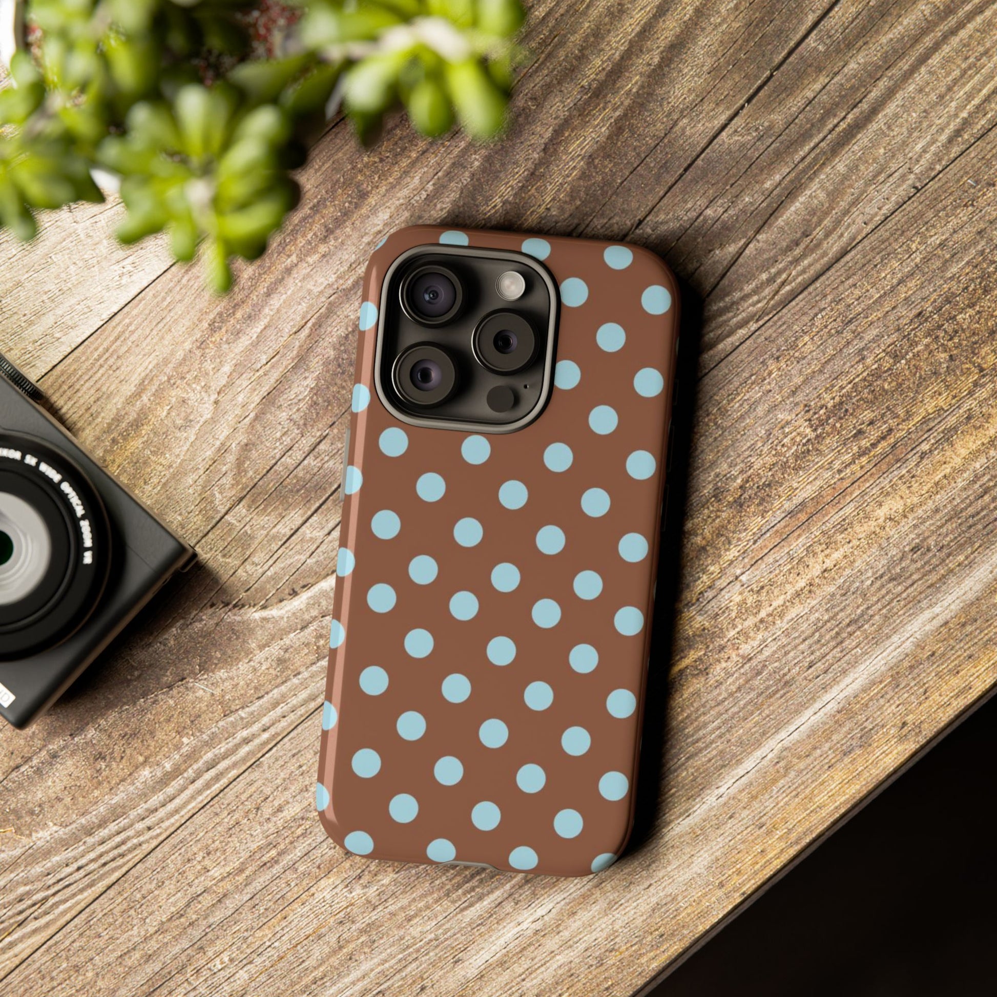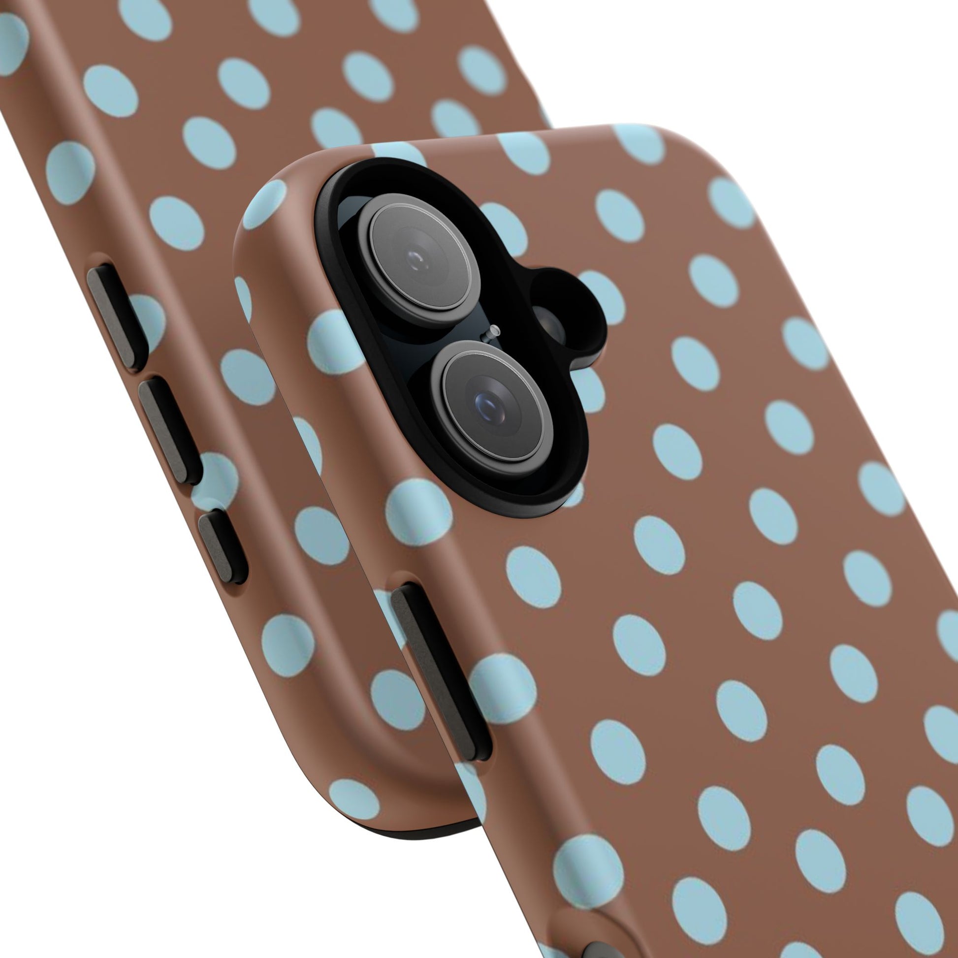 Introducing an eye-catching phone case designed to bring a splash of fun to your daily routine. This durable and stylish accessory not only protects your phone but also reflects your personality. With its vibrant brown base adorned with cheerful blue polka dots, this phone case is perfect for anyone looking to add a pop of color to their tech. Ideal for everyday use, it's a fantastic choice for students, professionals, and anyone who loves unique designs. This phone case is relevant for gifting during holidays like Christmas and birthdays, or as a thoughtful treat for yourself during any celebratory occasion. Embrace a blend of charm and functionality with this must-have phone accessory!
